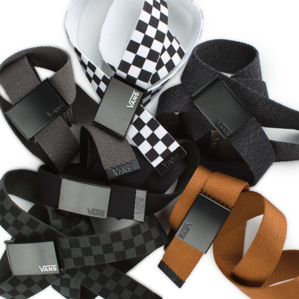 The Deppster Web Belt is a 100% polyester web belt with a printed checkerboard pattern and classic Vans logo snap buckle.