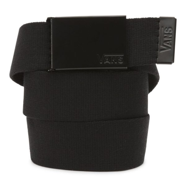 The Deppster Web Belt is a 100% polyester web belt with a classic Vans logo snap buckle.