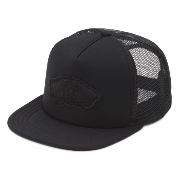 The Classic Patch Trucker Hat is a 100% polyester mesh-back adjustable trucker hat with a Vans Off The Wall logo patch.