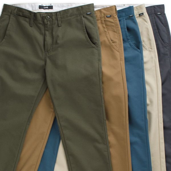 The Authentic Chino Stretch Pant is a 64% cotton, 34% polyester, and 2% elastane 7.8 oz. Sturdy Stretch twill chino pant featuring a timeless combination of classic styling and skateboard functionality built to take a beating. Utilizing a poly-covered elastane thread that provides long-lasting stretch and shape retention, the Authentic Chino Stretch Pant also includes front slash pockets, back welt pockets with button closures, a woven branded label, and a modern, easy-wearing slim fit with a medium rise. Model is 6 feet tall and wearing a size 32.