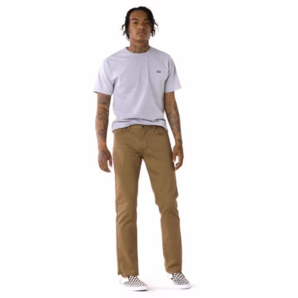 The AVE Covina Pant, part of the Anthony Van Engelen signature collection, is a 64% cotton, 34% polyester, and 2% elastane 7.8 oz. Sturdy Stretch twill pant that utilizes a unique blend of fibers built for skateboarding to provide comfort and increased durability with exceptional shape and stretch retention. Featuring classic 5-pocket styling, a zip fly, and a genuine leather patch on the waistband, the AVE Covina Pant has a medium rise, everyday fit that is neither too slim nor too straight. Model is 6 feet tall and wearing a size 32.