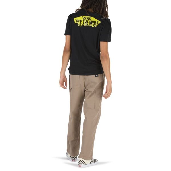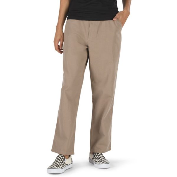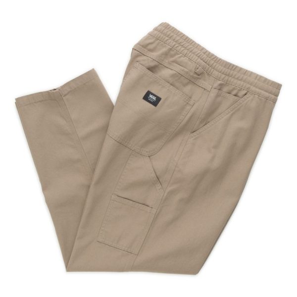 The Municiple Pant is a 100% BCI Cotton 8 oz. rigid nailhead canvas carpenter pant with an elastic waist and a loose, roomy fit. Model is 6 feet tall and wearing a size Medium.