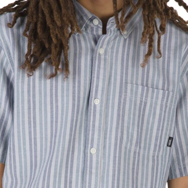 The Anton Short Sleeve Shirt is a 100% BCI Cotton buttondown shirt with yarn dyed oxford fabric and a chest pocket. Model is 6 feet tall and wearing a size Medium.