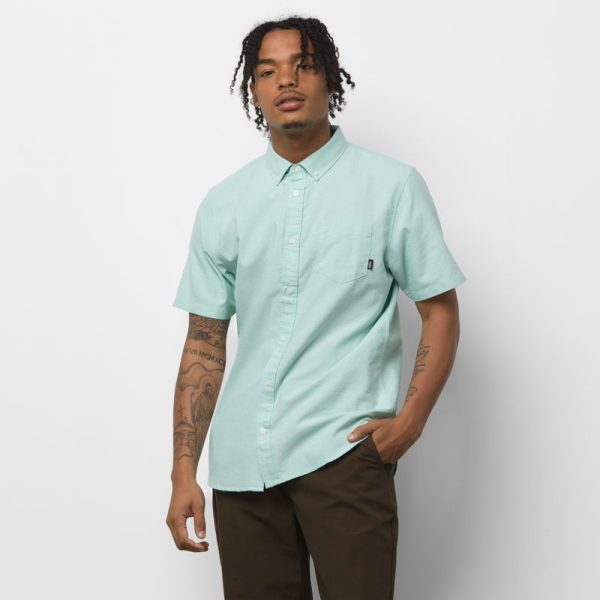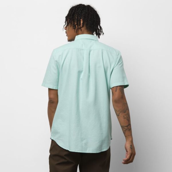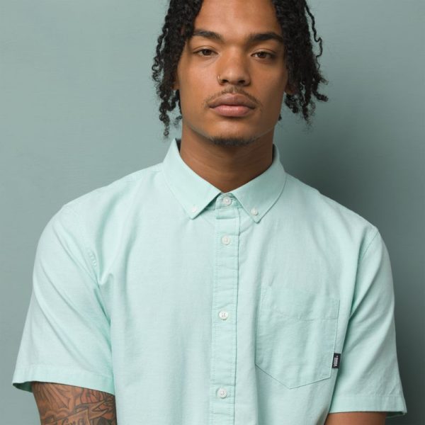 The Houser Short Sleeve Shirt is a 100% BCI Cotton oxford buttondown shirt with a chest pocket. Fit type: classic. Model is 6 feet tall and wearing a size Medium.