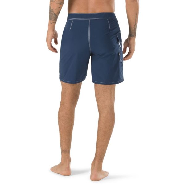 The Ever-Ride Boardshort II 17 is a 100% polyester 2-way stretch Ever-Ride boardshort utilizing renewable Sorona® fibers to combine functional benefits with an old school boardshort look. This fabric is lightweight, durable, dries quickly, has a mechanical and long-lasting stretch, and features a compact weave structure that creates a smooth finish against the skin for comfort in or out of the water. The Ever-Ride Boardshort also includes checkerboard knit tape at the left side seam and a Vans branded woven label. Model is 6 feet tall and wearing a size 32.