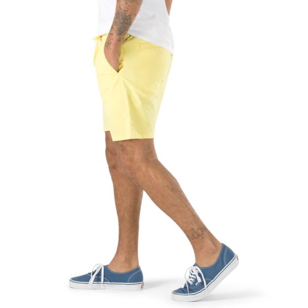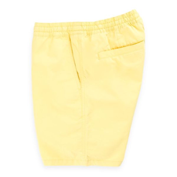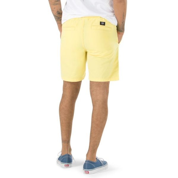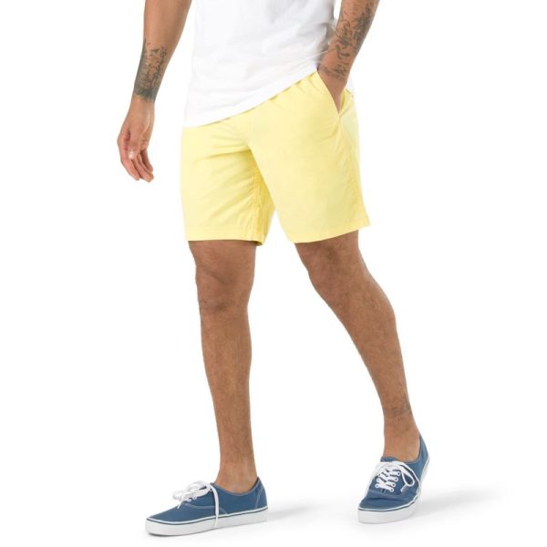 The Range Short 18 is a 100% BCI cotton lightweight twill chino short with an elastic waistband and a medium rise, modern fit that sits just below the waist. Model is 6 feet tall and wearing a size Medium.