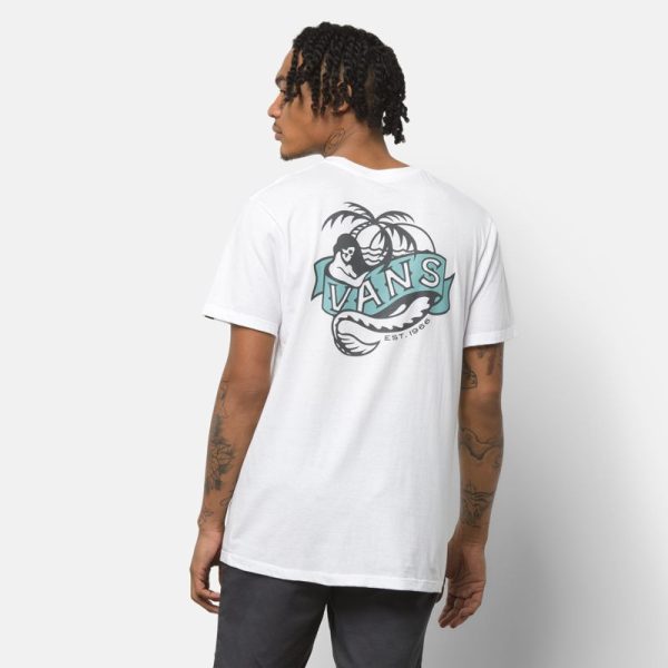 The Siren Short Sleeve T-Shirt is a 100% combed ringspun cotton t-shirt with graphics at the left chest and back. Fit type: slim. Model is 6 feet tall and wearing a size Medium.
