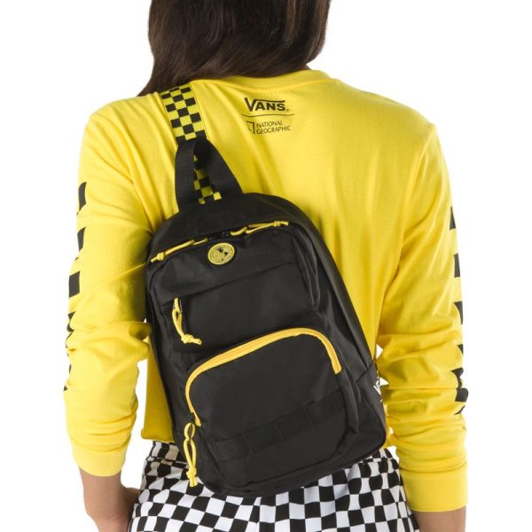 Vans and National Geographic come together for a collection of footwear and apparel that celebrates over 130 years of the never-ending quest to explore our planet. Honoring National Geographic’s longstanding tradition of seeking and storytelling, the Vans X National Geographic Backpack is a sling backpack featuring a convertible checkerboard strap, multiple pockets, and the iconic National Geographic seal that dates back to the Society’s founding in 1888. Discover the different styles in this collection, and become inspired to explore our planet.