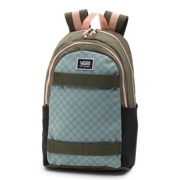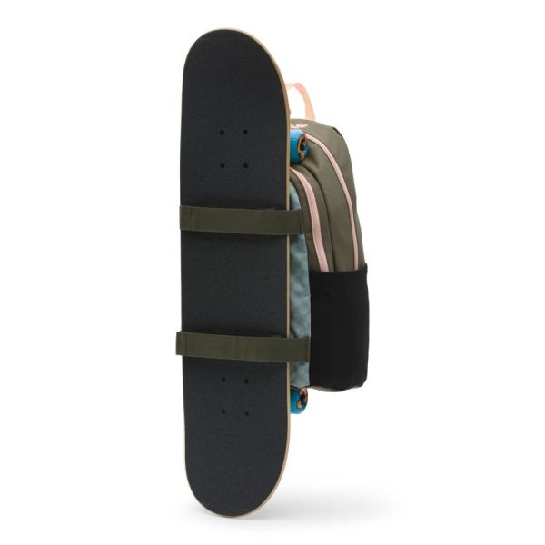 The Strand Skate Pack is a 100% polyester skate backpack featuring two main compartments, a laptop sleeve, a front pocket with an organizer, and side water bottle pockets. It also includes ergonomic padded shoulder straps and skate straps. Measuring 17 H x 11 W x 6.5 D inches, it has a 22-liter capacity.