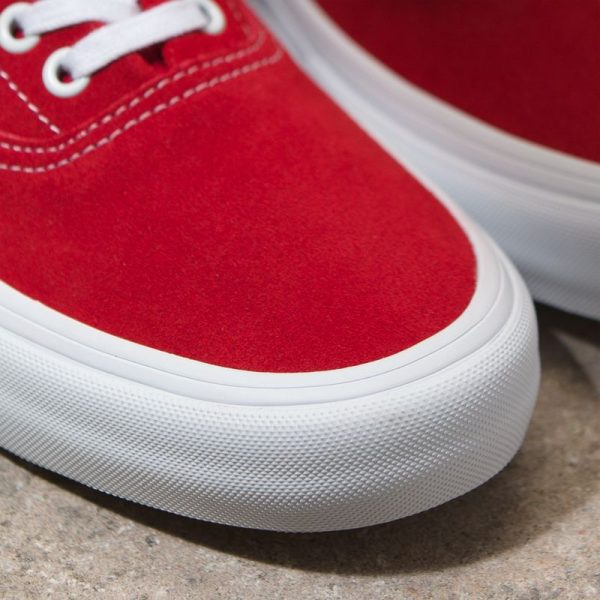 The Suede Era Pro, a Vans classic upgraded for enhanced performance, features sturdy suede uppers, single-wrap foxing tape, enhanced footbeds for superior cushioning and impact protection, and Vans original waffle outsoles made of a rubber that offers grip and support. The Era Pro also includes DURACAP reinforcement rubber underlays in high wear areas for unrivaled durability, and Pro Vulc Lite construction to deliver the best in boardfeel, flex, and traction.