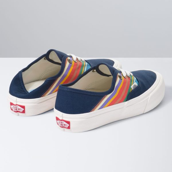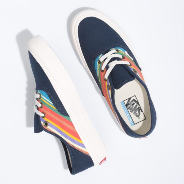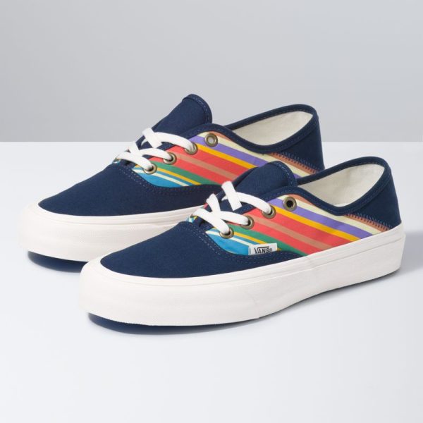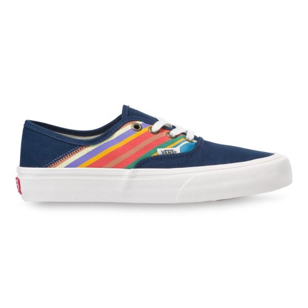 The Authentic SF combines our original low profile silhouette with the Vans Surf SF build to create an upgraded, comfortable lace-up style with a collapsible heel. Made with water-based inks and glues, the Retro Stripes Authentic SF also features sturdy canvas uppers with retro stripes, molded UltraCush sockliners for upgraded cushioning, Vulc Lite construction, and classic rubber waffle outsoles with single-wrap foxing tape for lightweight comfort.