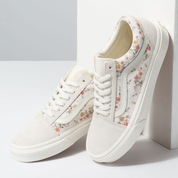 The Vintage Old Skool, the Vans classic skate shoe and first to bear the iconic sidestripe, is a low top lace-up featuring printed textile and suede uppers, re-enforced toecaps to withstand repeated wear, padded collars for support and flexibility, and signature rubber waffle outsoles.