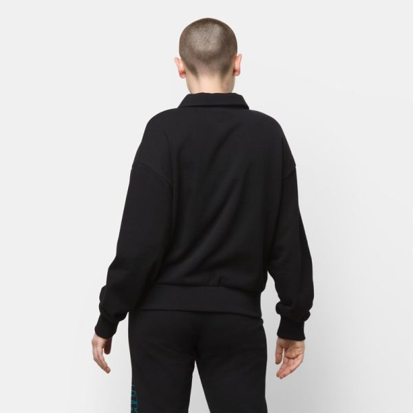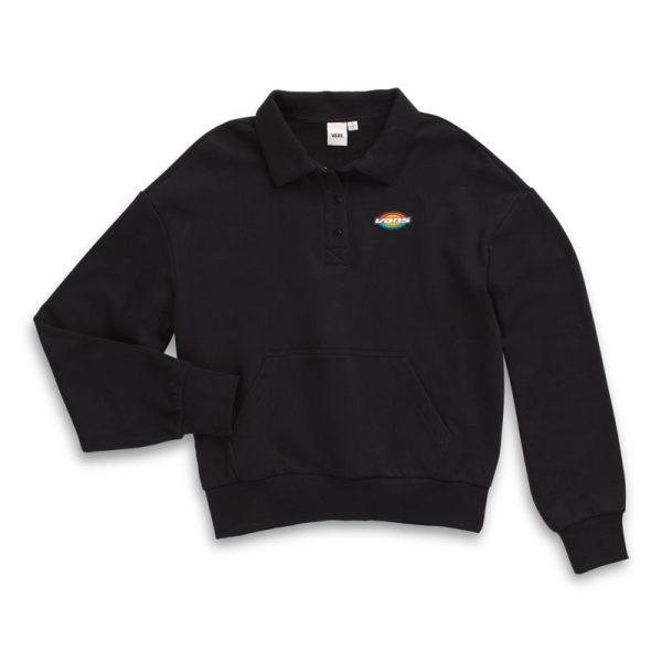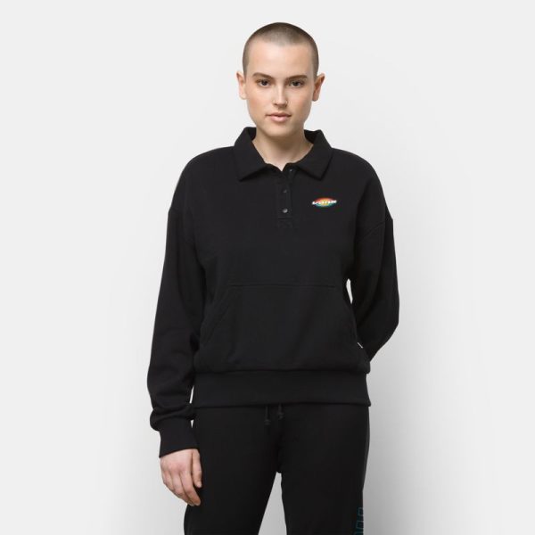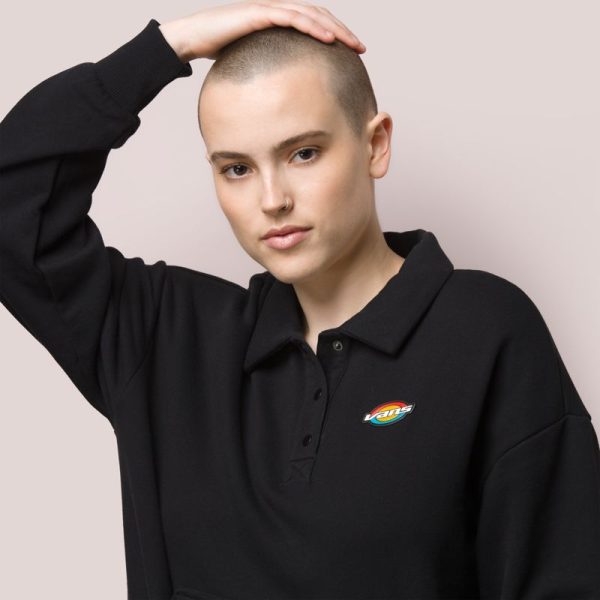 The Dome Grown Polo Fleece Sweatshirt is an 84% cotton, 16% polyester French terry fleece pullover sweatshirt with polo styling, a snap-front placket, a novelty logo patch at the chest, and a relaxed fit. Model is 5 feet 9 inches tall and wearing a size Small.