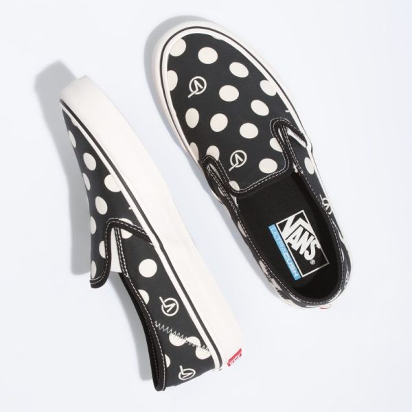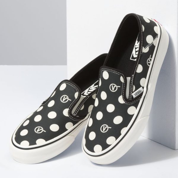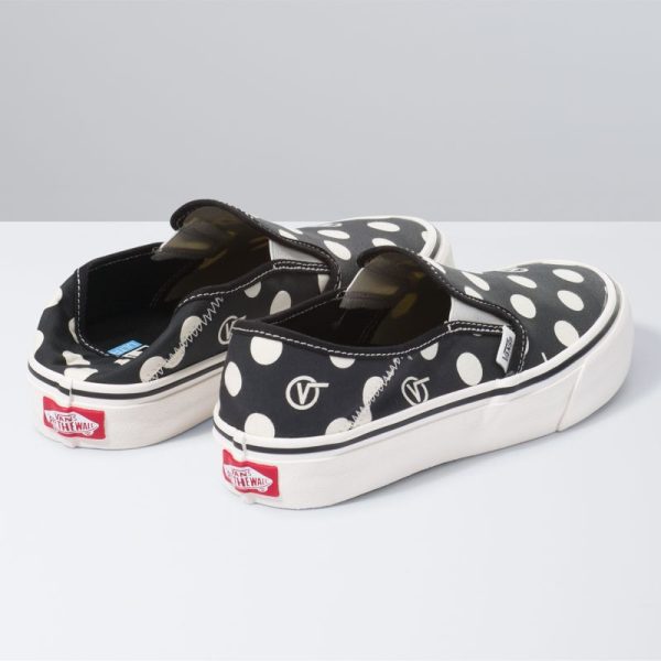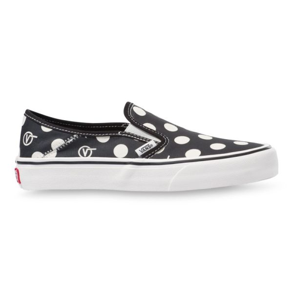 The Polka V-Dot Slip-On SF combines a deconstructed low profile silhouette with the Vans Surf SF build to create an upgraded, comfortable slip-on style with a collapsible heel. Made with water-based inks and glues, the Polka V-Dot Slip-On SF also features sturdy canvas uppers with an allover polka dot print, molded UltraCush sockliners for upgraded cushioning, Vulc Lite construction, and classic rubber waffle outsoles with single-wrap foxing tape for lightweight comfort.