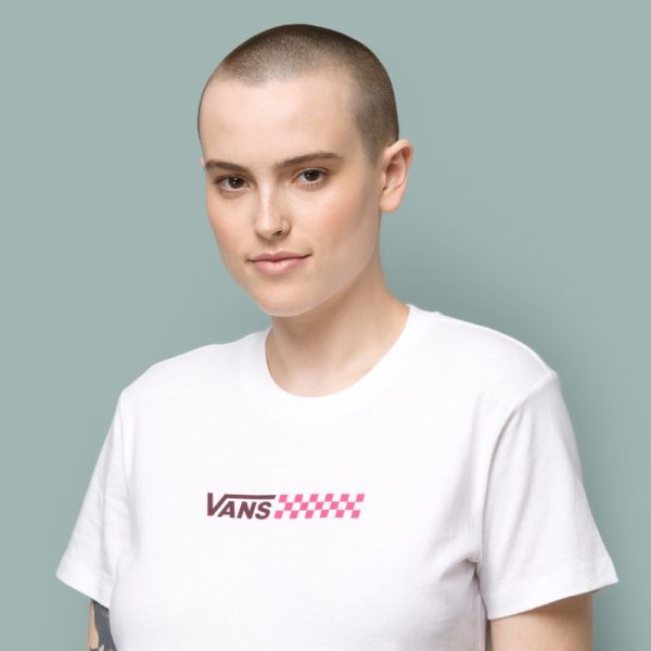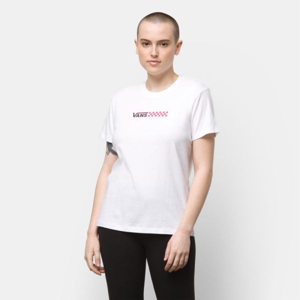 The Glory Daze Boyfriend T-Shirt is a heavy 100% cotton jersey boyfriend tee with classic checkerboard logo graphics at the front. Model is 5 feet 9 inches tall and wearing a size Small.