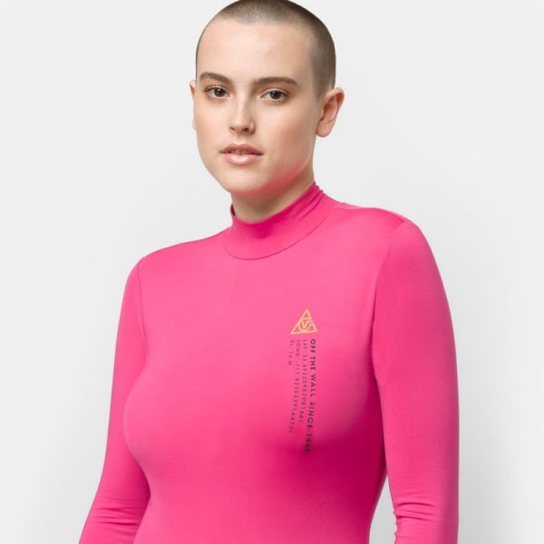 From the streets to beyond, Vans 66 Supply lets you do what you need to do. This versatile collection features functional footwear and apparel with military-inspired aesthetics to get you where you need to go in style. Highlighting understated color palettes including vetiver and grapeleaf with yellow chrome accents on a range of utilitarian pieces accentuating oversized fits, cargo pockets, and webbing, the Vans 66 Supply Collection is sure to stand out above the rest. Made with 80% polyester and 20% elastane, the 66 Supply Bodysuit features long sleeves, a mock neck, a snap closure, and a brushed back interior for warmth. It also includes a screen print at the chest. Model is 5 feet 9 inches tall and wearing a size Small.