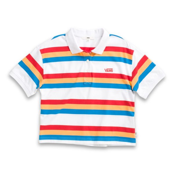 The Long Haul Polo Shirt is a 100% cotton polo shirt with short sleeves, yarn dyed stripes, and contrast ribbing. It also features embroidery at the chest and a boxy, cropped fit. Model is 5 feet 9 inches tall and wearing a size Small.